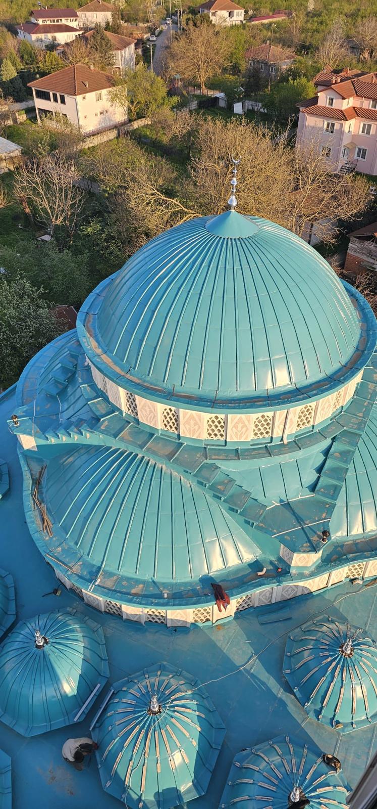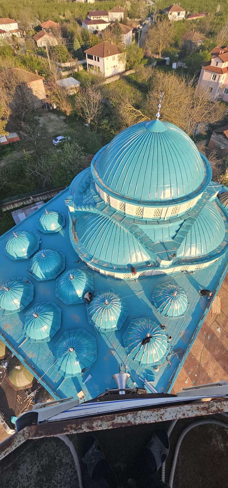 Eski kurşun olan kubbe malzemeleri sökülüp daha kaliteli uzun ömürlü sıcağa ve soğuğa dayanıklı yeşil aleminyum kubbe kaplaması yaptık.